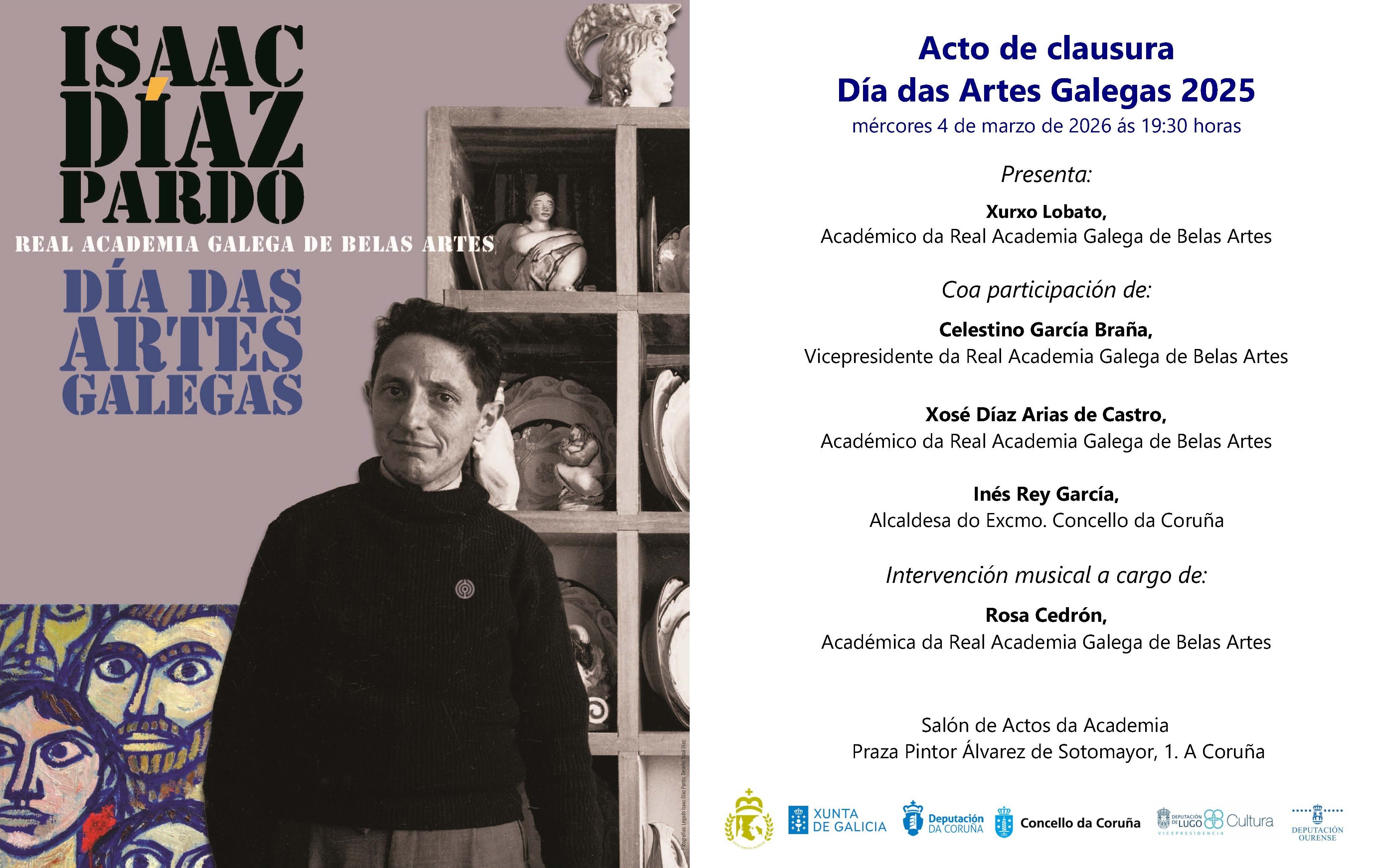A Real Academia Galega de Belas Artes, creada no 1849 para fomentar a práctica, o estudo, contribuír á salvagarda, á sensibilización das artes e do patrimonio cultural galego, na súa Asemblea de 31 de Xaneiro de 2015, decidiu instituír o “Día das Artes Galegas”. Motivo para a exaltación, divulgación e promoción da creación en Galicia. E arredor da xornada un sólido argumento: confín habitado dende a Prehistoria, de antolóxicos monumentos megalíticos, emporio na Idade dos Metais, de sobranceiros ourives, de incontables e estratéxicos castros, arrodeados de lendas; Gallaecia de portos, faros, de enclaves romanos e suevos, que deron paso á humanización do territorio en ribeiras sacras, encrucillada de camiños a Compostela, para o nacemento do Románico [...]